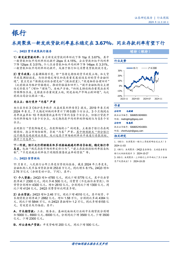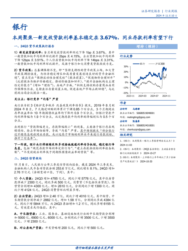 【国盛证券】【20241110】银行业本周聚焦:新发放贷款利率基本稳定在3.67%,同业存款利率有望下行-11页