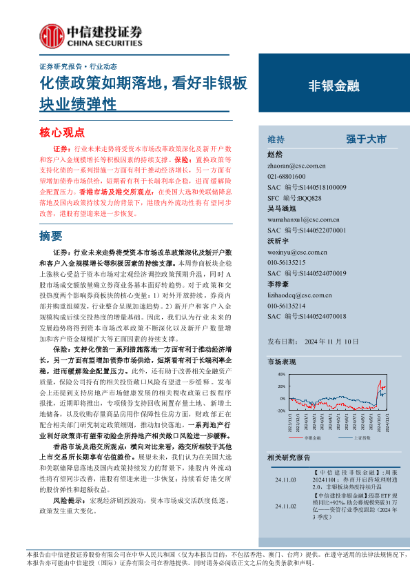 【中信建投证券】【20241110】非银金融行业:化债政策如期落地,看好非银板块业绩弹性-26页