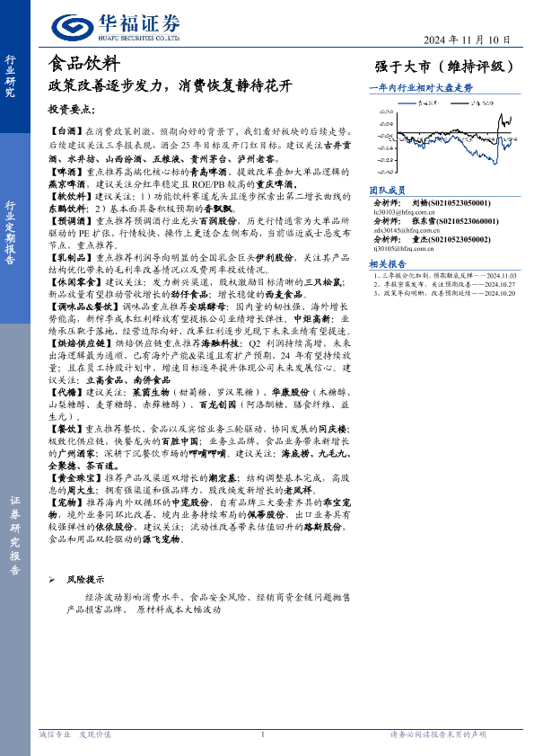 【华福证券】【20241110】食品饮料行业定期报告:政策改善逐步发力,消费恢复静待花开-12页