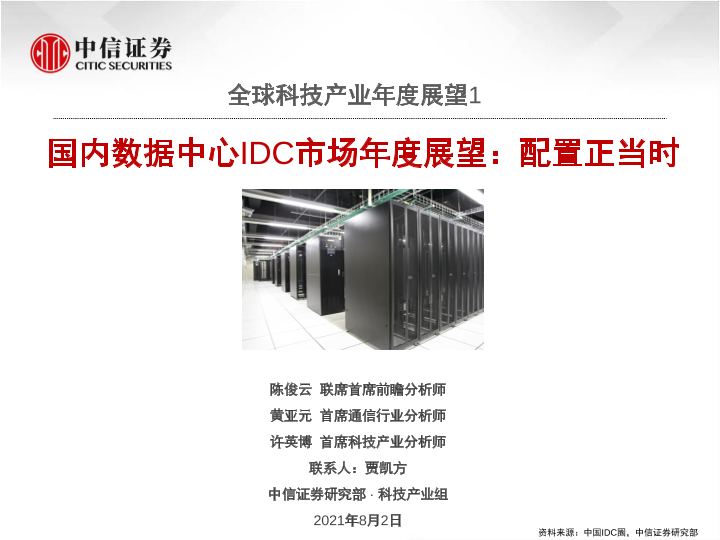 【中信证券】【20210802】全球科技行业产业年度展望1:国内数据中心IDC市场年度展望,配置正当时-72页