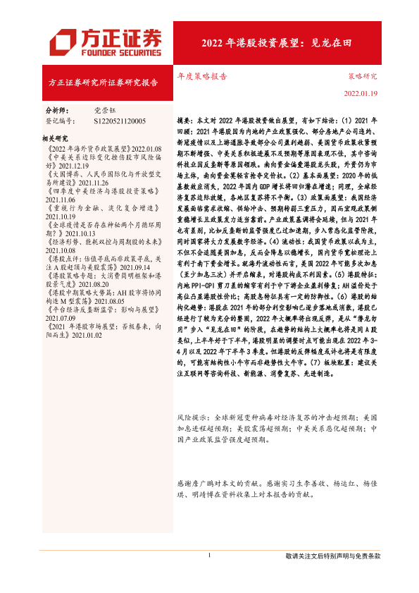 【方正证券】【20220119】2022年港股投资展望:见龙在田-35页