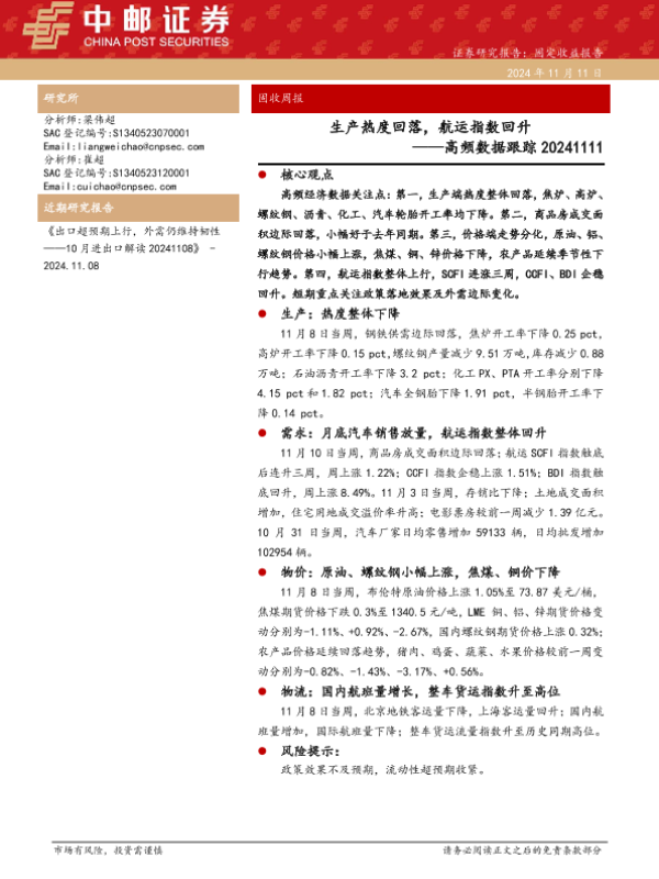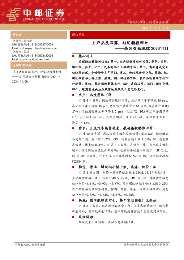 【中邮证券】【20241111】高频数据跟踪:生产热度回落,航运指数回升-13页