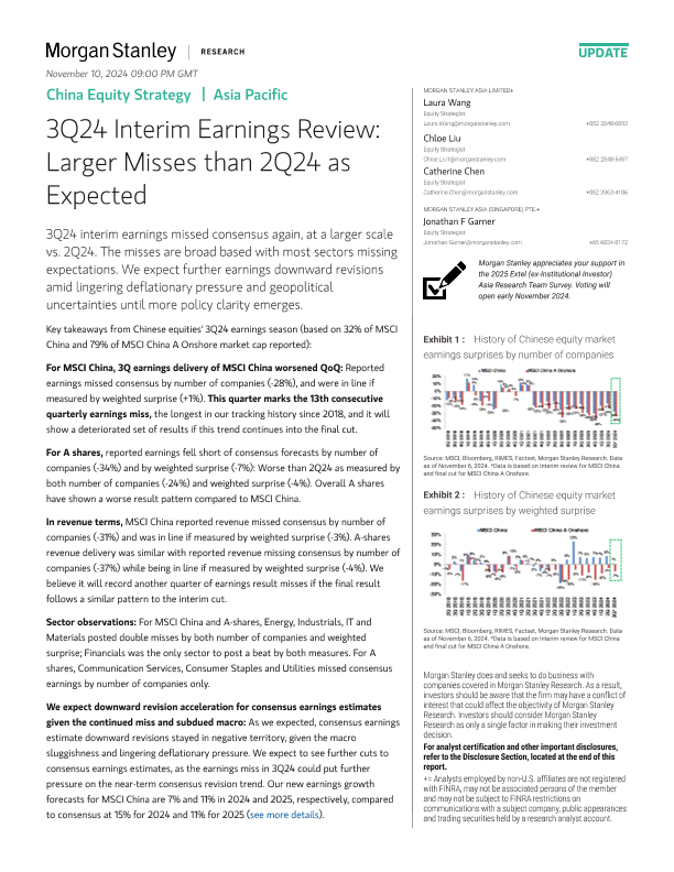 【Morgan Stanley】【202411】3Q24 Interim Earnings Review Larger Misses than 2Q24 as Expected-25页