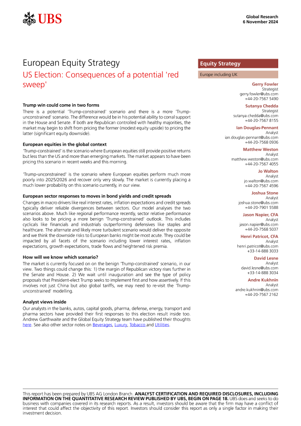 【UBS】【20241106】US Election Consequences of a potential 'red sweep'-24页