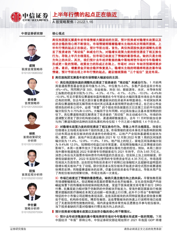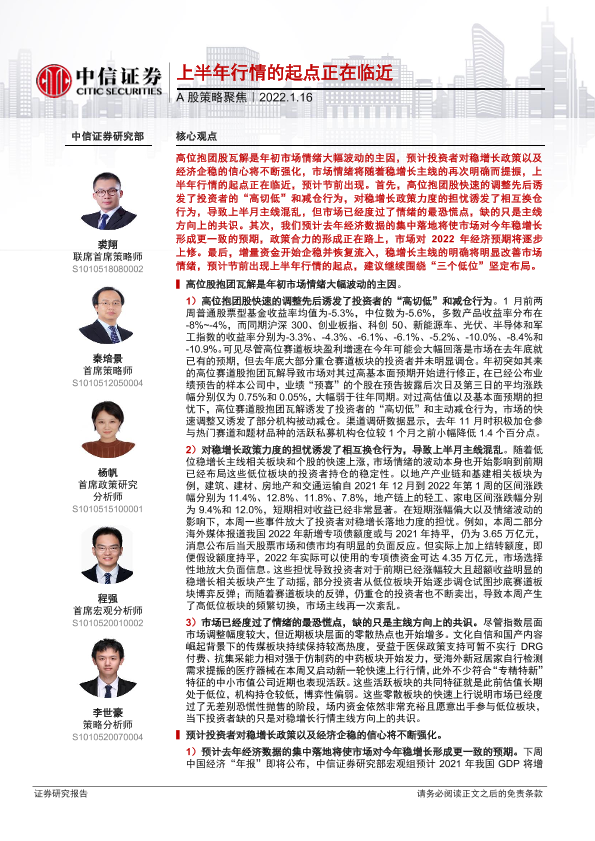 【中信证券】【20220116】A股策略聚焦:上半年行情的起点正在临近-16页