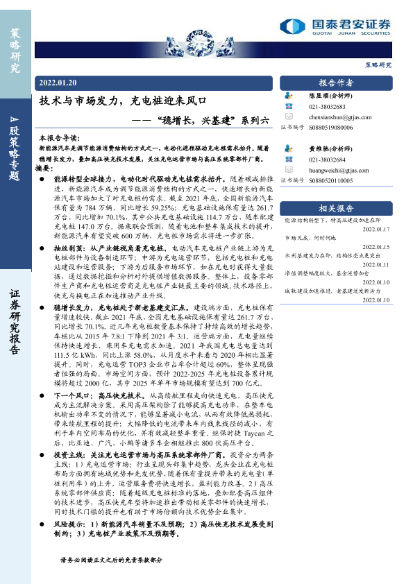 【国泰君安证券】【20220120】“稳增长,兴基建”系列六:技术与市场发力,充电桩迎来风口-18页