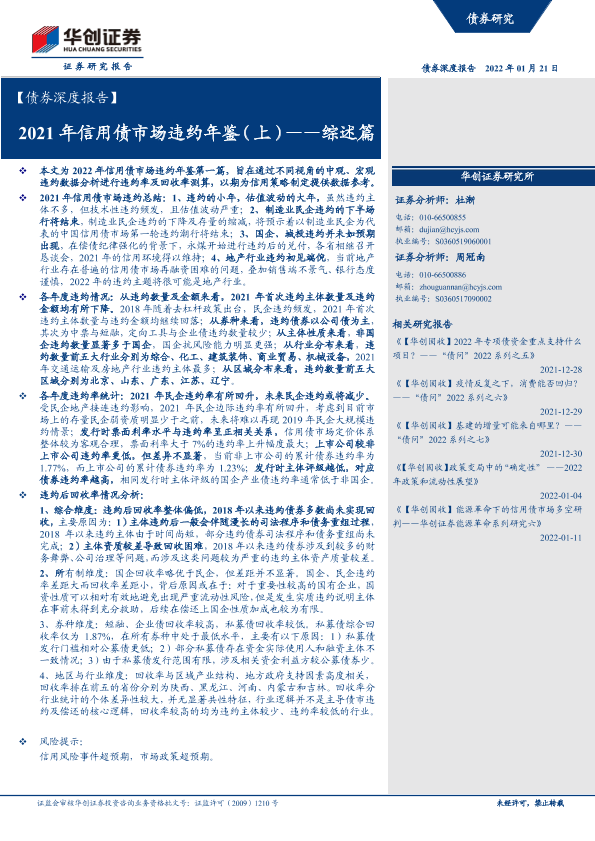 【华创证券】【20220121】2021年信用债市场违约年鉴(上)-综述篇-21页