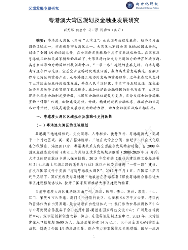 【研发部何金中孙田原陈彦吟(实习)】【2024】粤港澳大湾区规划及金融业发展研究-20页