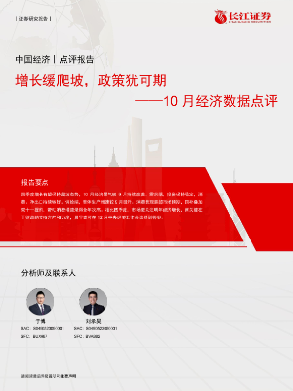 【长江证券】【20241115】10月经济数据点评:增长缓爬坡,政策犹可期-13页