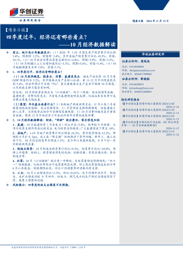 【华创证券】【20241115】10月经济数据解读:四季度过半,经济还有哪些看点?-11页