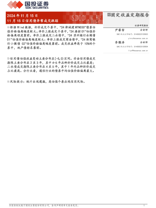 【国投证券】【20241115】11月15日信用债异常成交跟踪-10页