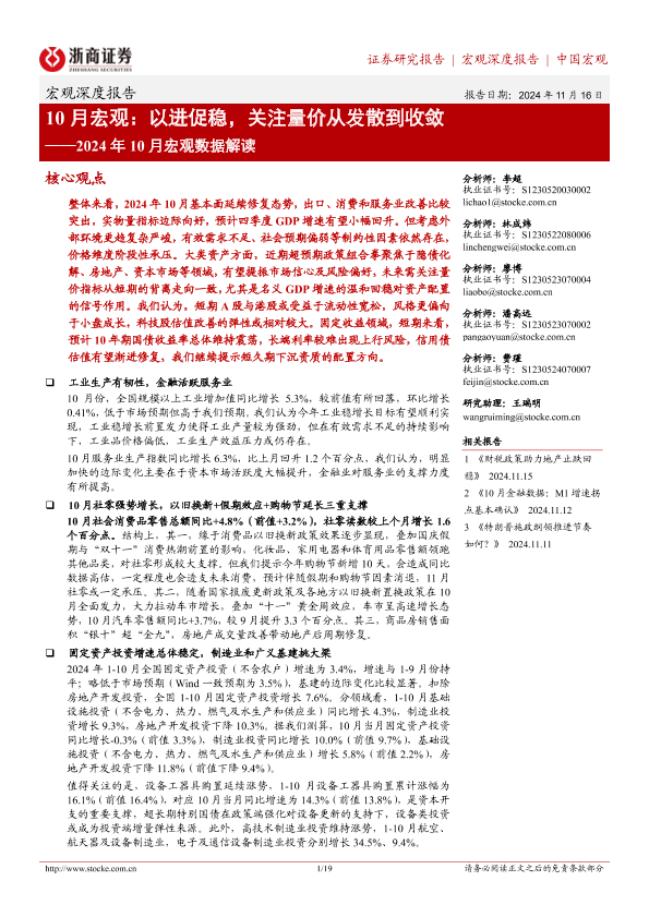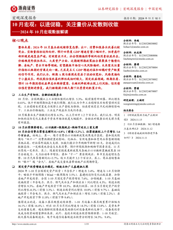 【浙商证券】【20241116】2024年10月宏观数据解读-10月宏观:以进促稳,关注量价从发散到收敛-19页