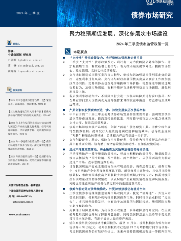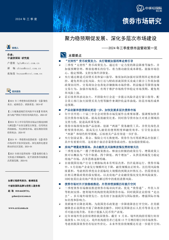 【中诚信国际】【202407】2024年三季度债市监管政策一览:聚力稳预期促发展、深化多层次市场建设-12页