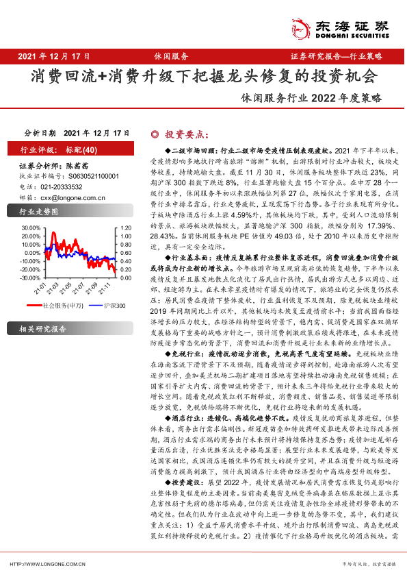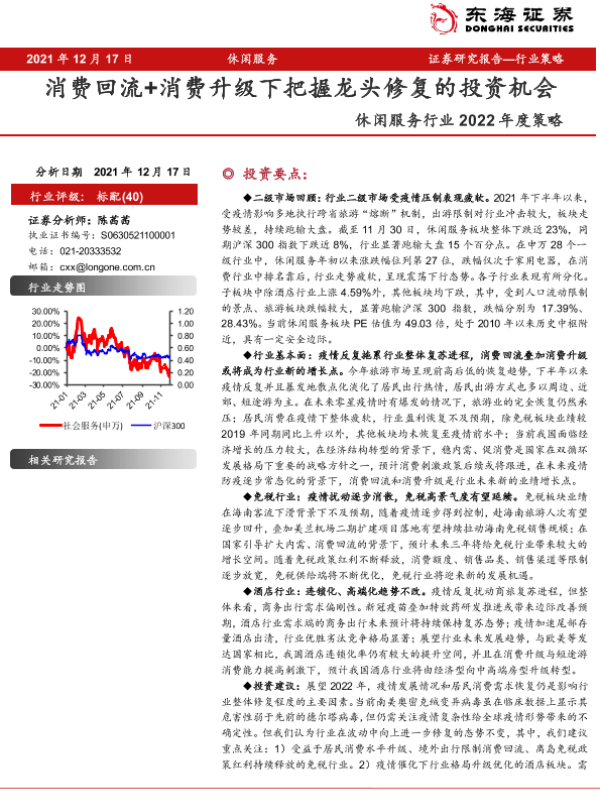 【东海证券】【20211217】休闲服务行业2022年度策略:消费回流+消费升级下把握龙头修复的投资机会-20页