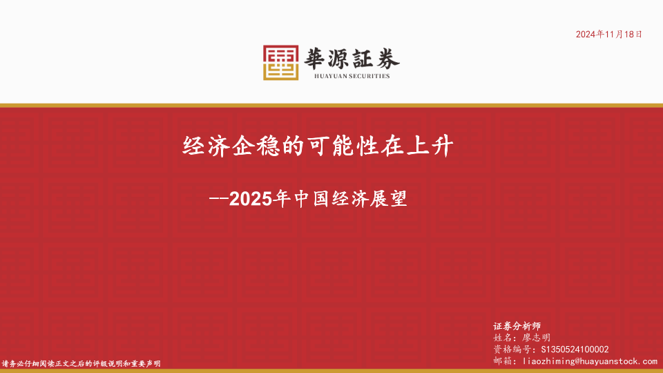 【华源证券】【20241118】2025年中国经济展望:经济企稳的可能性在上升-23页
