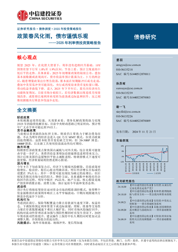 【中信建投证券】【20241121】2025年利率债投资策略报告:政策春风化雨,债市谨慎乐观-25页