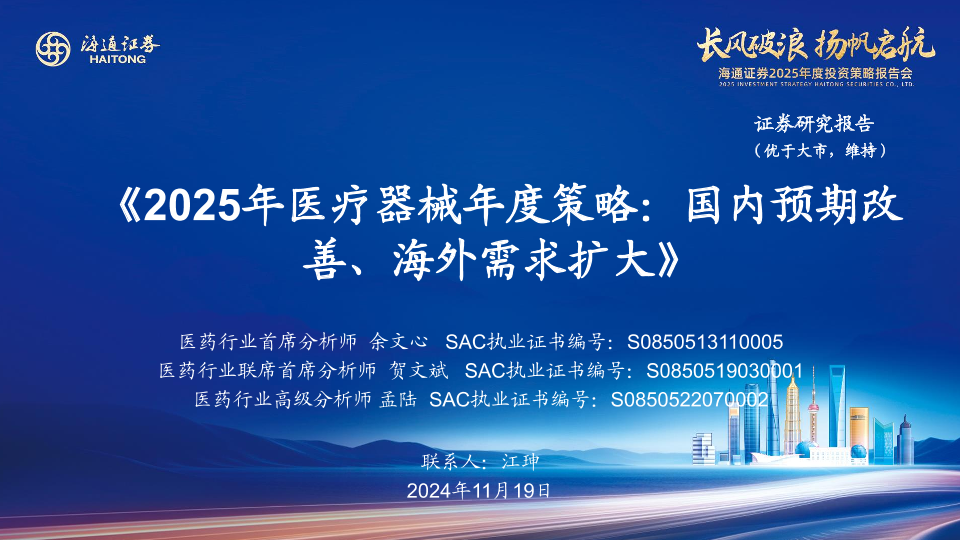 【海通证券】【20241119】2025年医疗器械行业年度策略:国内预期改善、海外需求扩大-20页