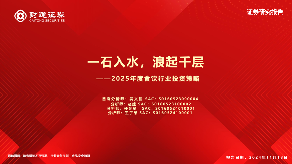 【财通证券】【20241118】2025年度食饮行业投资策略:一石入水,浪起千层-38页