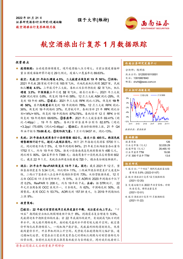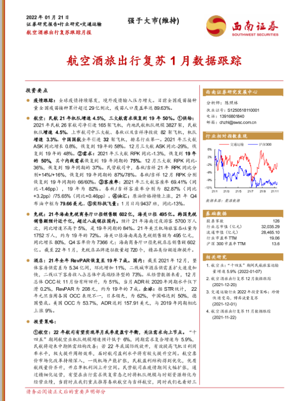 【西南证券】【20220121】交通运输行业航空酒旅出行复苏跟踪月报:航空酒旅出行复苏1月数据跟踪-20页