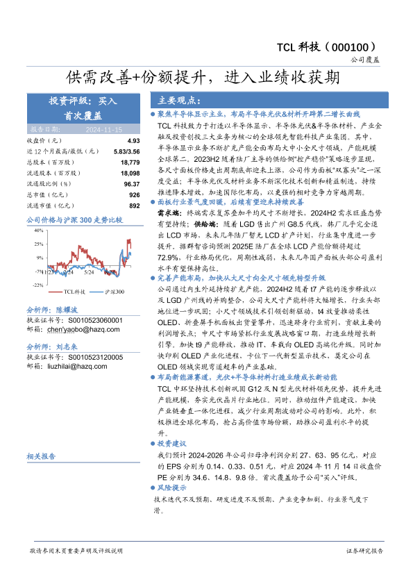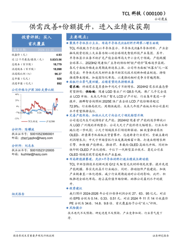 【华安证券】【20241115】TCL科技(000100)供需改善+份额提升,进入业绩收获期-31页
