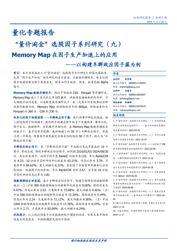 【国盛证券】【20241120】“量价淘金”选股因子系列研究(九):Memory+Map在因子生产加速上的应用,以构建羊群效应因子簇为例-25页
