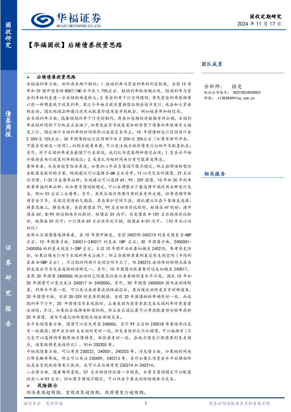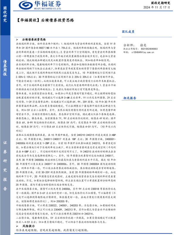 【华福证券】【20241117】【华福固收】后续债券投资思路-19页