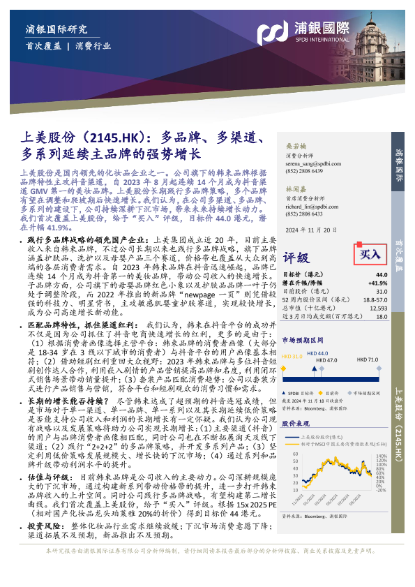 【浦银国际】【20241120】上美股份(2145.HK)多品牌、多渠道、多系列延续主品牌的强势增长-40页