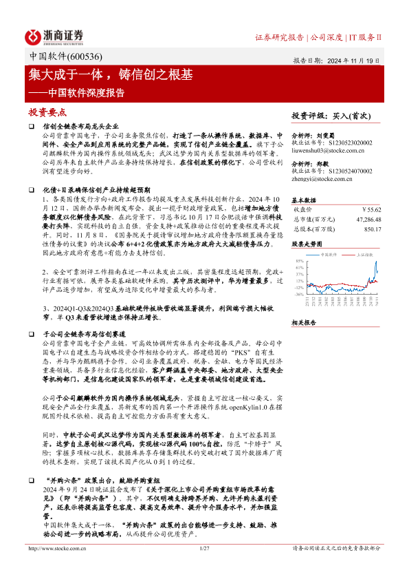 【浙商证券】【20241119】中国软件(600536)深度报告:集大成于一体,铸信创之根基-27页