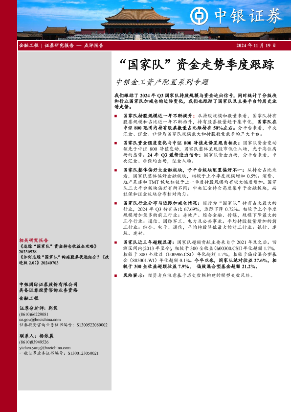 【中银证券】【20241119】中银金工资产配置系列专题:“国家队”资金走势季度跟踪-26页