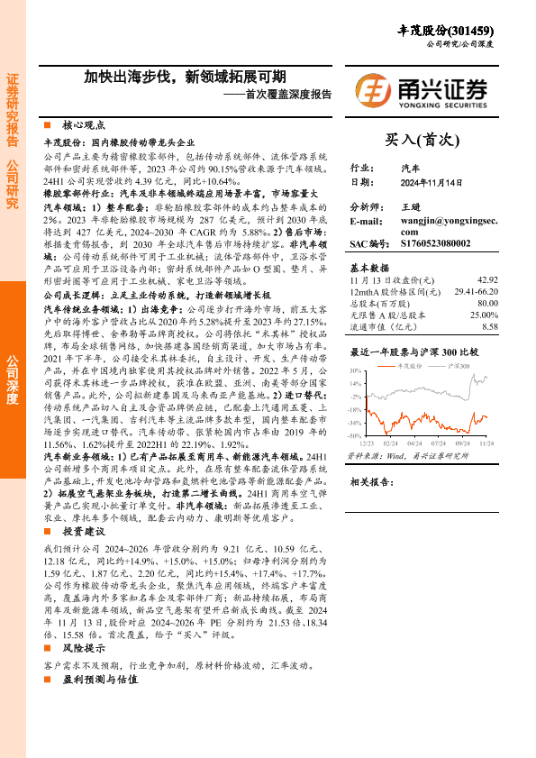 【甬兴证券】【20241114】丰茂股份(301459)首次覆盖深度报告:加快出海步伐,新领域拓展可期-27页