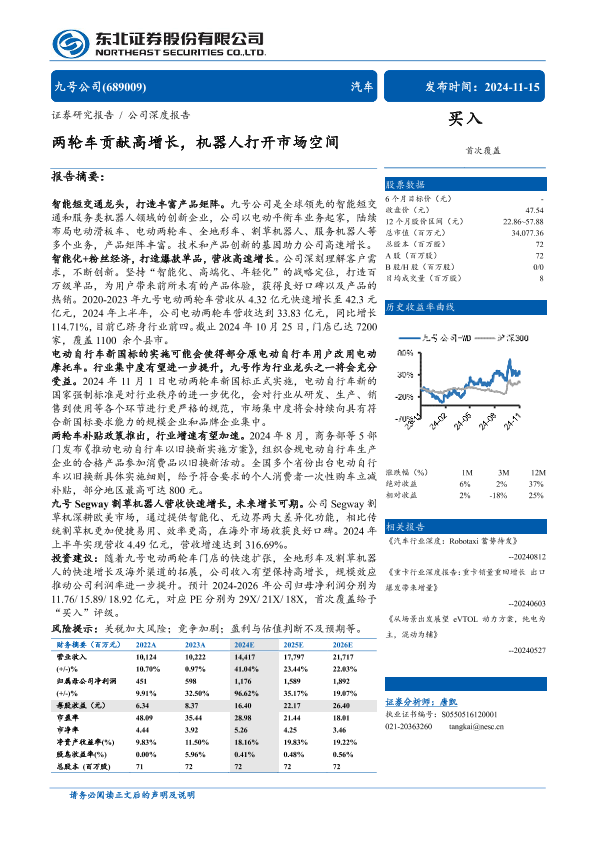 【东北证券】【20241115】九号公司(689009)两轮车贡献高增长,机器人打开市场空间-30页