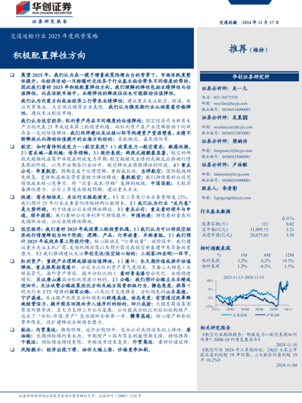 【华创证券】【20241117】交通运输行业2025年度投资策略:积极配置弹性方向-37页