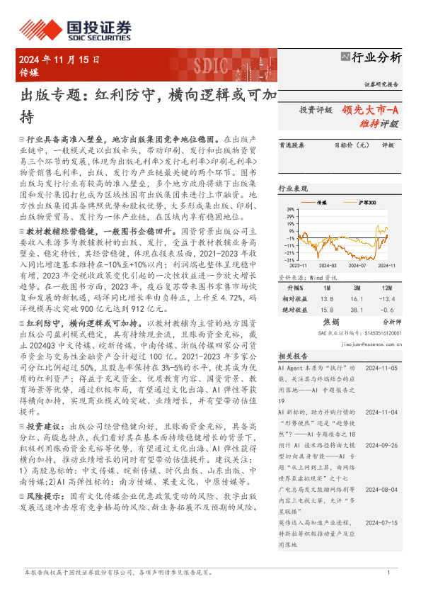【国投证券】【20241115】传媒行业出版专题:红利防守,横向逻辑或可加持-11页