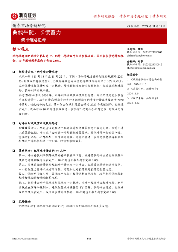【浙商证券】【20241117】债市策略思考:曲线牛陡,长债蓄力-11页