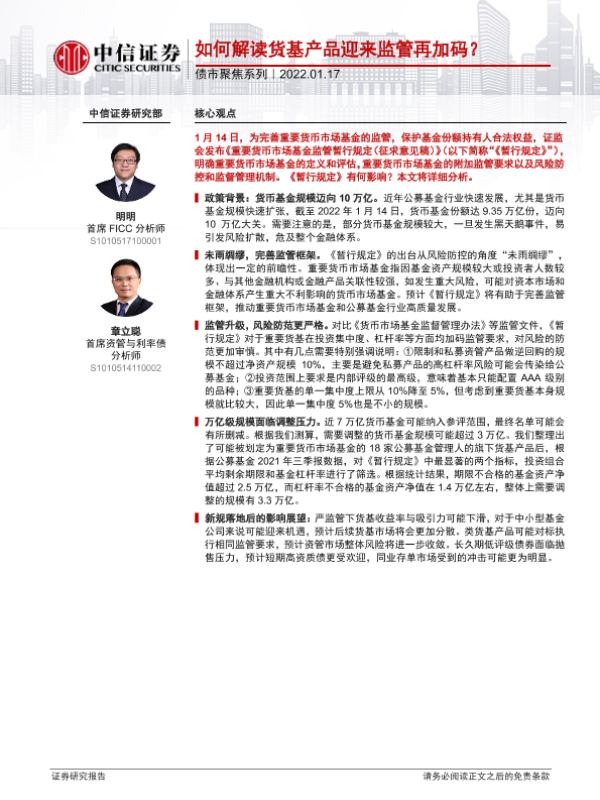 【中信证券】【20220117】债市聚焦系列:如何解读货基产品迎来监管再加码?-21页