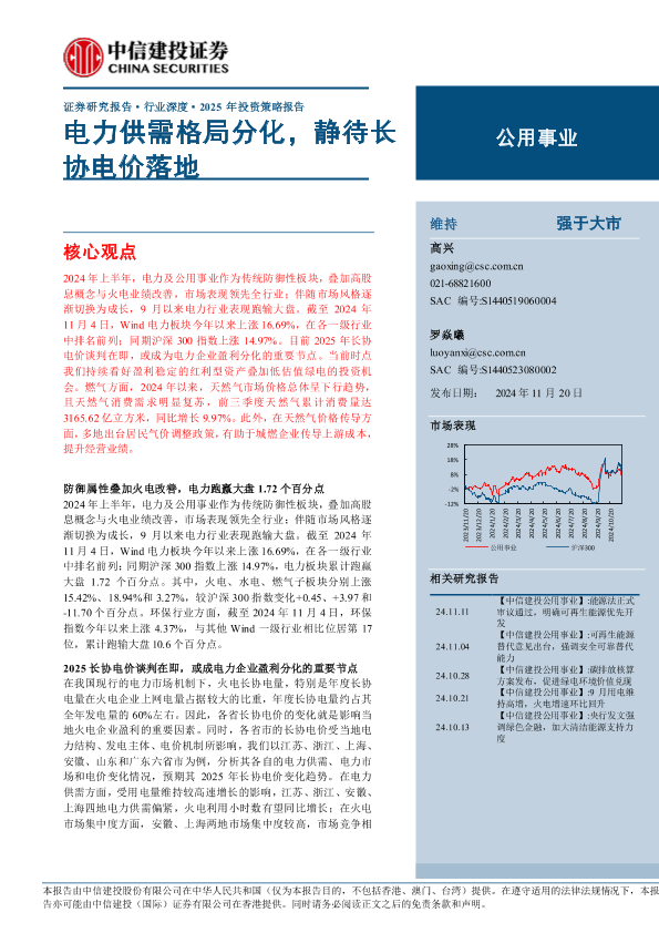 【中信建投证券】【20241120】公用事业行业:电力供需格局分化,静待长协电价落地-77页