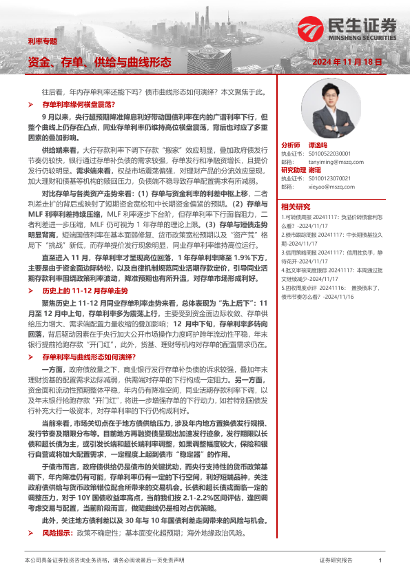 【民生证券】【20241118】利率专题:资金、存单、供给与曲线形态-19页