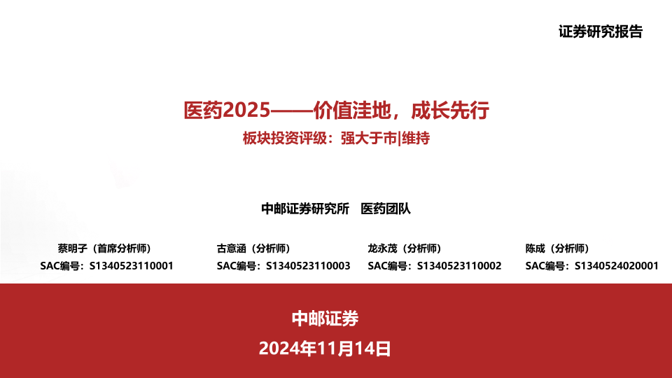 【中邮证券】【20241114】医药行业2025:价值洼地,成长先行-84页