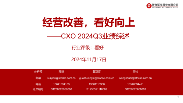 【浙商证券】【20241117】医药行业CXO+2024Q3业绩综述:经营改善,看好向上-24页