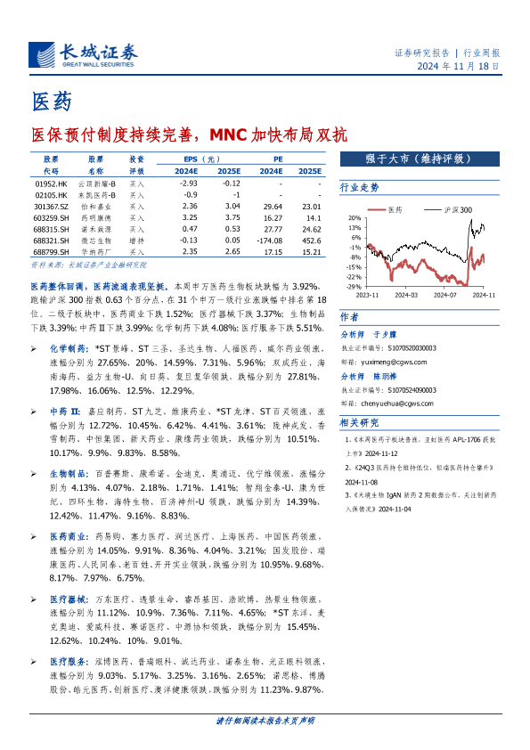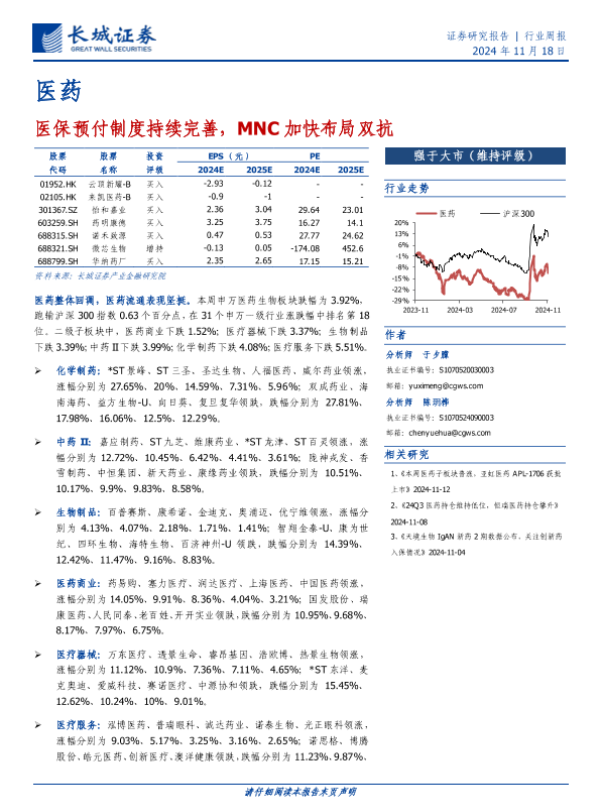 【长城证券】【20241118】医药行业:医保预付制度持续完善,MNC加快布局双抗-16页