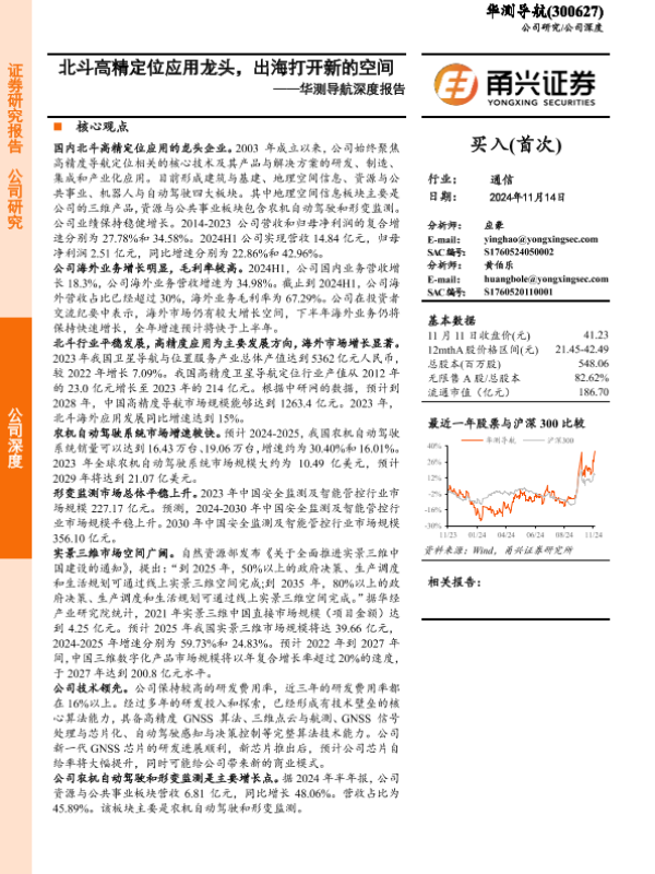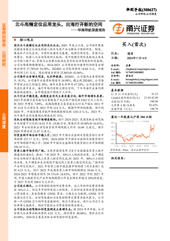 【甬兴证券】【20241114】华测导航(300627)深度报告:北斗高精定位应用龙头,出海打开新的空间-25页