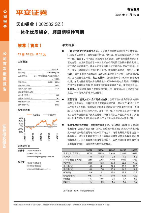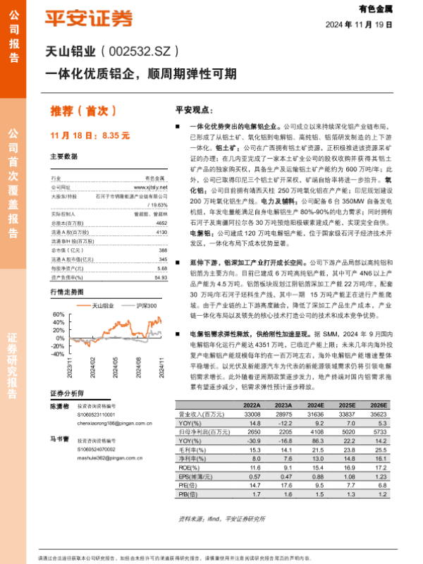 【平安证券】【20241119】天山铝业(002532)一体化优质铝企,顺周期弹性可期-22页