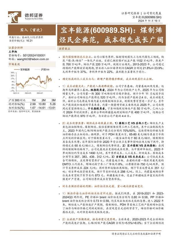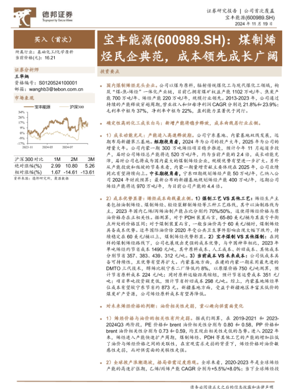 【德邦证券】【20241119】宝丰能源(600989)煤制烯烃民企典范,成本领先成长广阔-25页