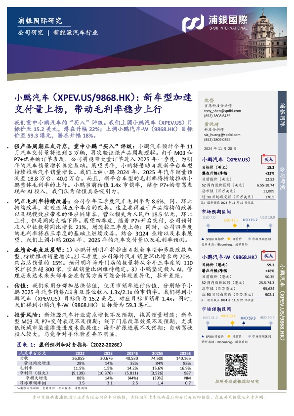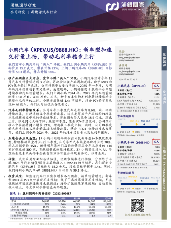 【浦银国际】【20241120】小鹏汽车-W(9868.HK)新车型加速交付量上扬,带动毛利率稳步上行-11页
