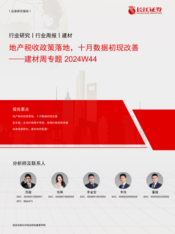【长江证券】【20241119】建材行业周专题+2024W44:地产税收政策落地,十月数据初现改善-16页