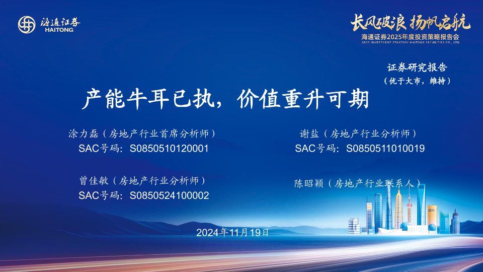 【海通证券】【20241119】房地产行业2025年度投资策略报告会:产能牛耳已执,价值重升可期-28页
