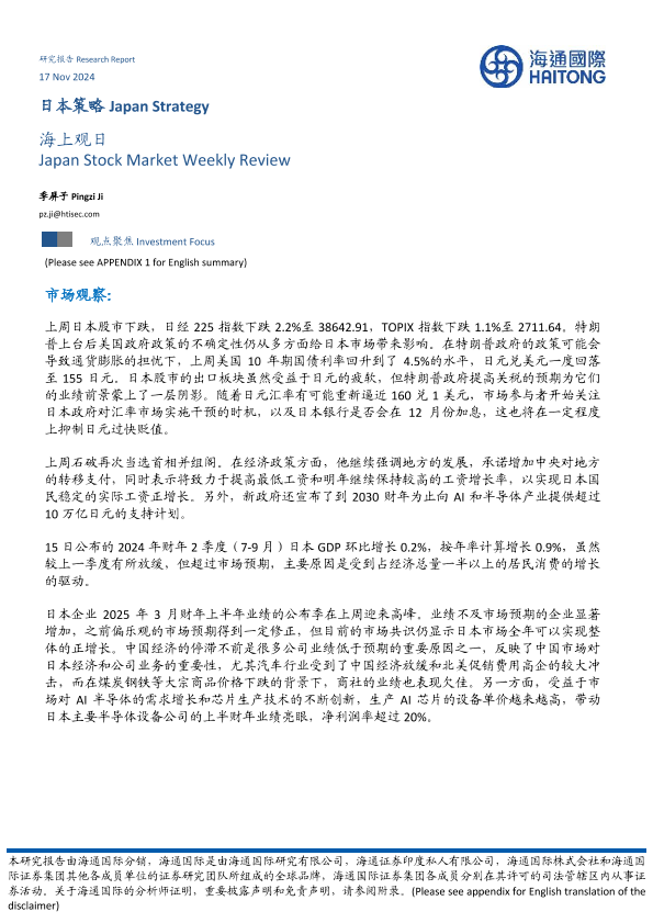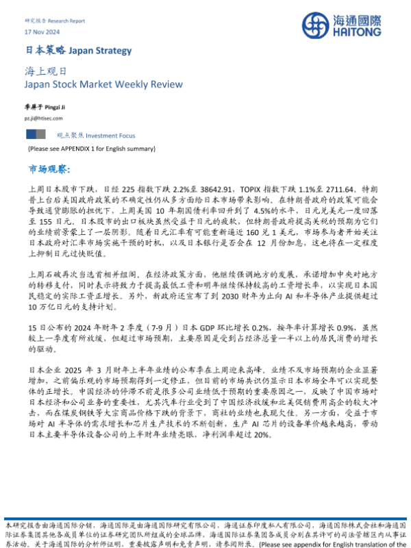 企业业绩 宏观经济 政策分析 日本股市 金融市场