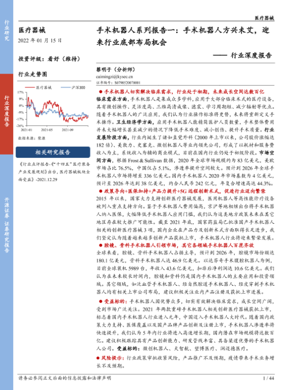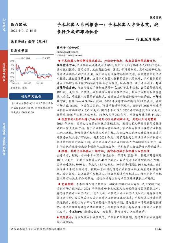 【开源证券】【20220115】医疗器械行业深度报告:手术机器人系列报告一,手术机器人方兴未艾,迎来行业底部布局机会-44页
