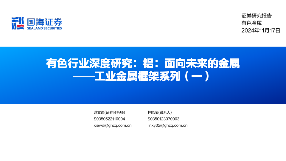【国海证券】【20241117】有色行业深度研究:工业金属框架系列(一),铝,面向未来的金属-42页
