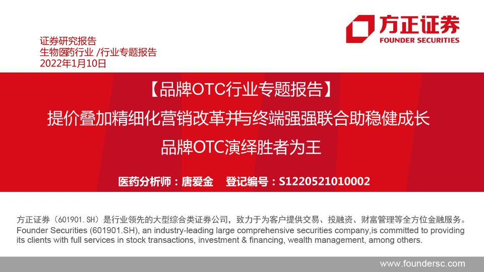 【方正证券】【20220110】品牌OTC行业专题报告:提价叠加精细化营销改革并与终端强强联合助稳健成长,品牌OTC演绎胜者为王-39页